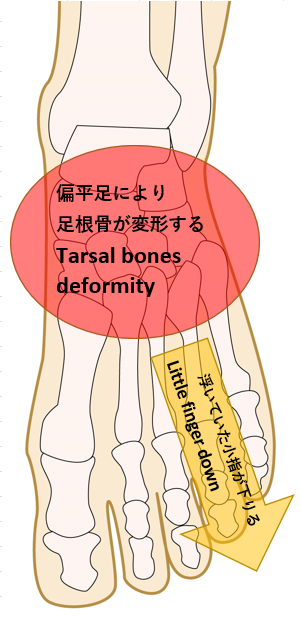 扁平足になると足根骨のアライメントが変形小指が下りる